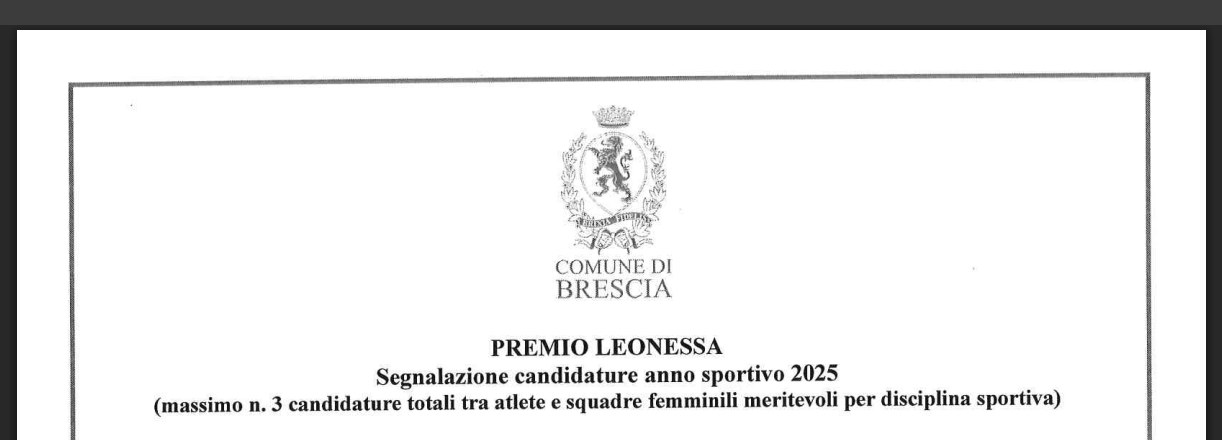 Anche quest’anno l’Assessorato allo Sport del Comune di Brescia propone il Premio Leonessa, programmato per sabato 7 marzo 2026 dalle ore 10.00 presso l’Auditorium San Barnaba C.so Magenta, 44 a Brescia.